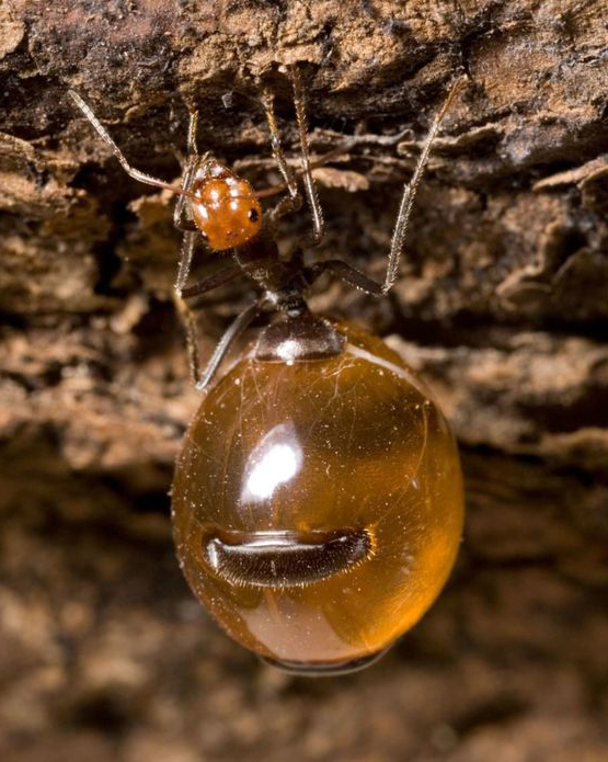 እነዚህ ልዩ ስራ ያላቸው ጉንዳኖች ግን ተንቀሳቅሰው አበባ የሚቀስሙ አይደሉም። ይልቁንም ይሄንንው ማር ለማምረት የሌሎች ጉንዳኖች እገዛ ያስፈልጋቸዋል።